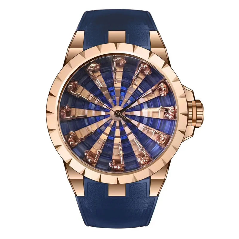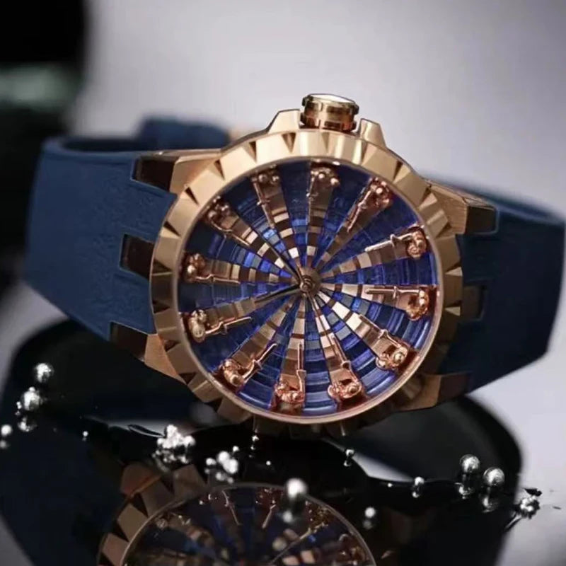 The Excalibur Knights of the Round Table is a quest involving among the highest degree of know-how in all that a watch can offer: design, technique and exclusivity. The very recognizable face of the watch is made of twelve micro-sculpture - the Knights - placed around a dial - the Table.