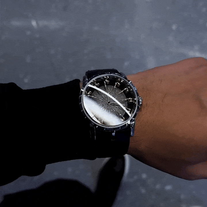 The Excalibur Knights of the Round Table is a quest involving among the highest degree of know-how in all that a watch can offer: design, technique and exclusivity. The very recognizable face of the watch is made of twelve micro-sculpture - the Knights - placed around a dial - the Table.